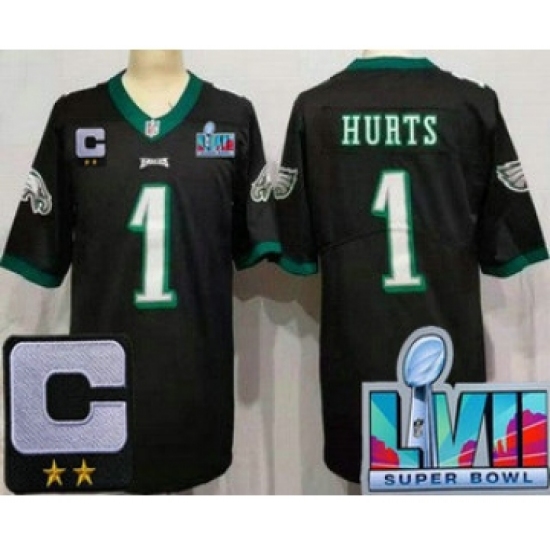 Men's Philadelphia Eagles #1 Jalen Hurts Limited Black C Patch Super Bowl LVII Vapor Jersey