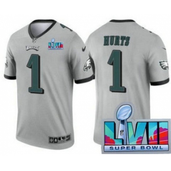 >Men's Philadelphia Eagles #1 Jalen Hurts Limited Gray Inverted Super Bowl LVII Vapor Jersey