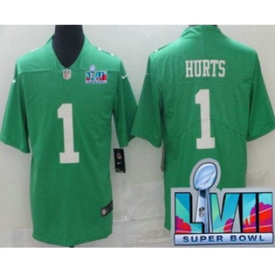 Men's Philadelphia Eagles #1 Jalen Hurts Limited Green Rush Super Bowl LVII Vapor Jersey