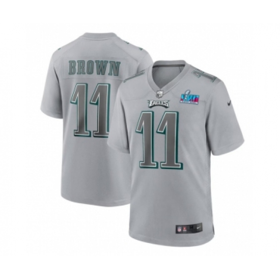 >Men's Philadelphia Eagles #11 A.J. Brown Gray Super Bowl LVII Patch Atmosphere Fashion Stitched Game Jersey
