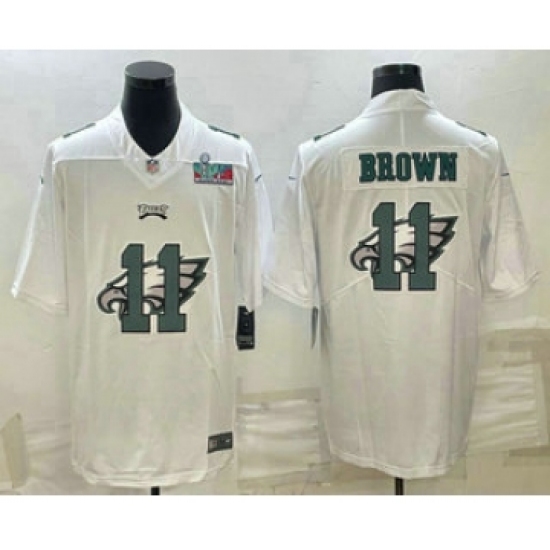 >Men's Philadelphia Eagles #11 AJ Brown Super Bowl LVII Patch White Shadow Logo Limited Stitched Jersey