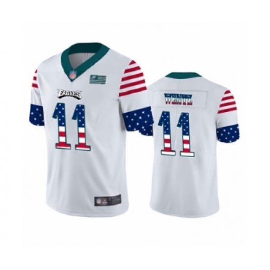 Men's Philadelphia Eagles #11 Carson Wentz White Independence Day Limited Player Football Jersey