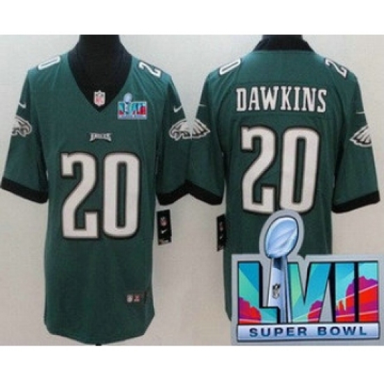 >Men's Philadelphia Eagles #20 Brian Dawkins Limited Green Super Bowl LVII Vapor Jersey