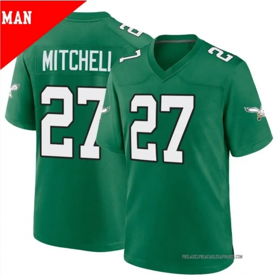 >Men's Philadelphia Eagles #27 Quinyon Mitchell Game Green Kelly Stitched Jersey