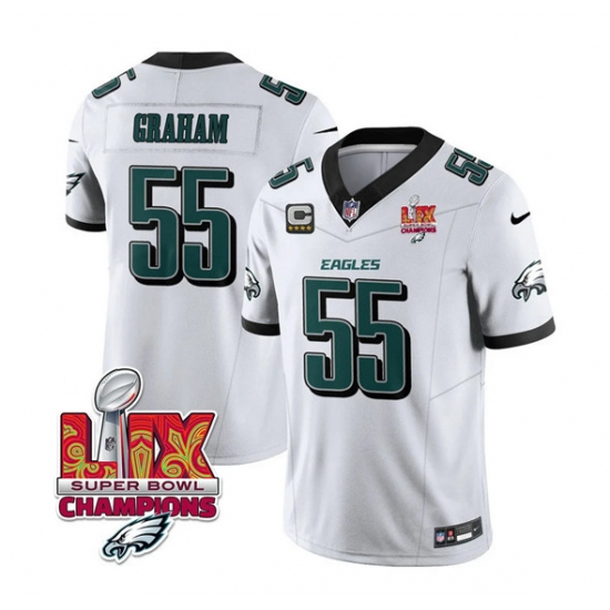 Men's Philadelphia Eagles #55 Brandon Graham White 2025 Eagles Logo Super Bowl LIX And 4-Star C New F.U.S.E. Vapor Limited Football Stitched Jersey