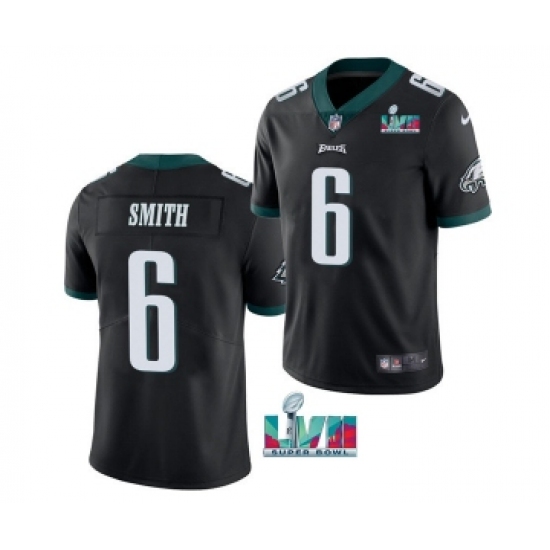 >Men's Philadelphia Eagles #6 DeVonta Smith Black Super Bowl LVII Patch Vapor Untouchable Limited Stitched Jersey
