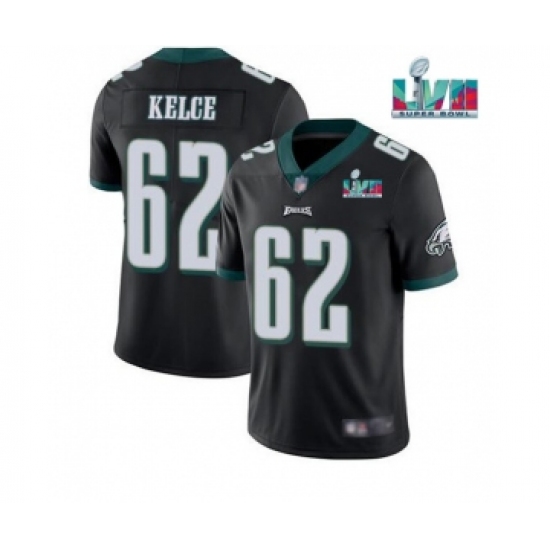 Men's Philadelphia Eagles #62 Jason Kelce Black Super Bowl LVII Patch Vapor Untouchable Limited Stitched Jersey