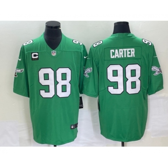 Men's Philadelphia Eagles #98 Jalen Carter Green C 2023 Vapor Limited Throwback Jersey