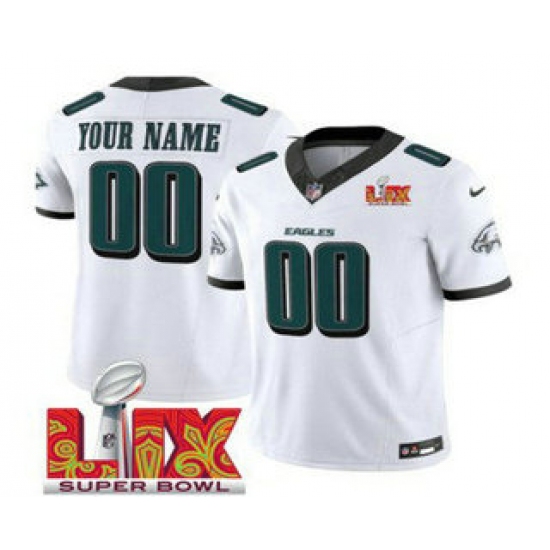 Men's Philadelphia Eagles Customized White 2025 Super Bowl LIX FUSE Vapor Limited Jersey