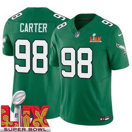Men's Philadelphia Eagles Jalen Carter #98 Kelly Green 2024 2025 Super Bowl LIX F U S E Stitched NFL Jersey