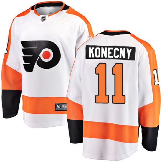 Home>NHL>Philadelphia Flyers>Travis Konecny>Men's Philadelphia Flyers #11 Travis Konecny Fanatics Branded White Away Breakaway NHL Jersey