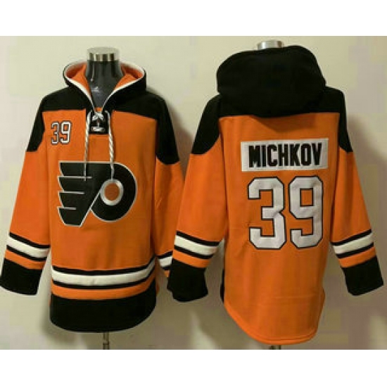 Men's Philadelphia Flyers #39 Matvei Michkov Orange Ageless Must Have Lace Up Pullover Hoodie