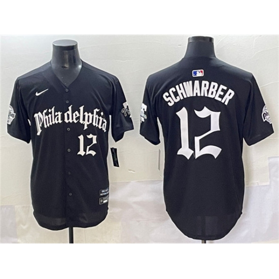 Men's Philadelphia Phillies #12 Kyle Schwarber Black Lights Out Limited Stitched Baseball Jersey