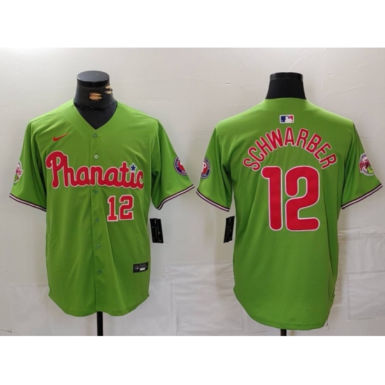 Men's Philadelphia Phillies #12 Kyle Schwarber Number Green With Stitched Cool Base Nike Jersey