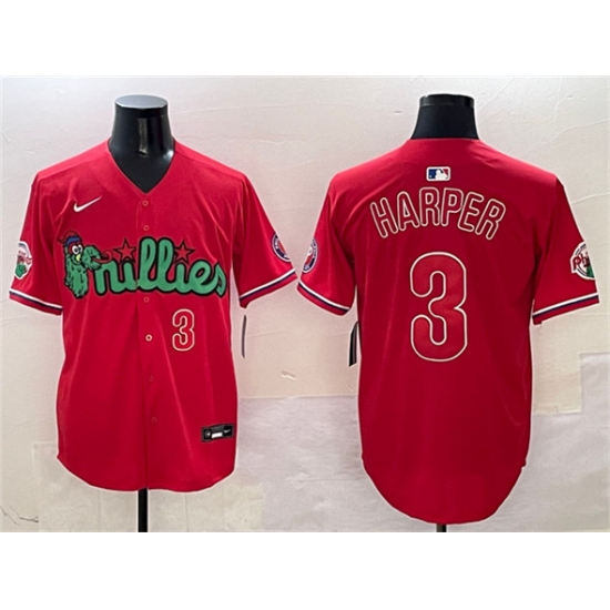 Men's Philadelphia Phillies #3 Bryce Harper Red Phanatic Limited Stitched Jersey
