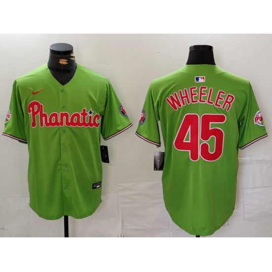 Men's Philadelphia Phillies #45 Zack Wheeler Green With Stitched Cool Base Nike Jersey
