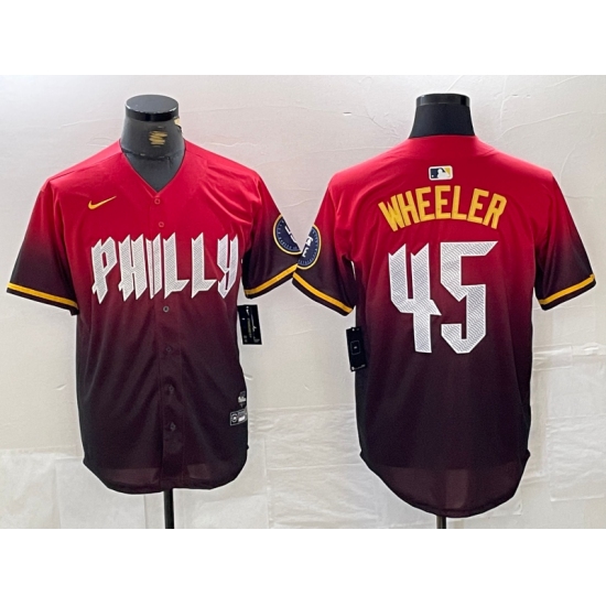 >Men's Philadelphia Phillies #45 Zack Wheeler Red 2024 City Cool Base Jersey