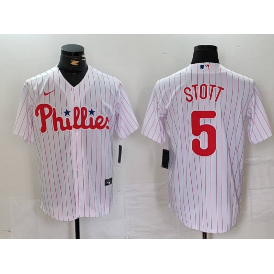 Men's Philadelphia Phillies #5 Bryson Stott White Pinstripe Stitched Cool Base Jersey
