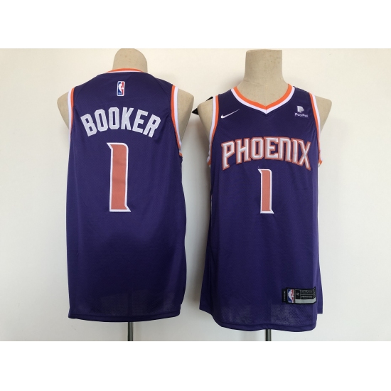 >Men's Phoenix Suns #1 Devin Booker Swingman Purple Basketball Jersey