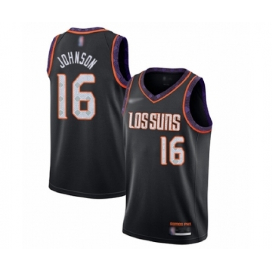 >Men's Phoenix Suns #16 Tyler Johnson Swingman Black Basketball Jersey - 2019 20 City Edition