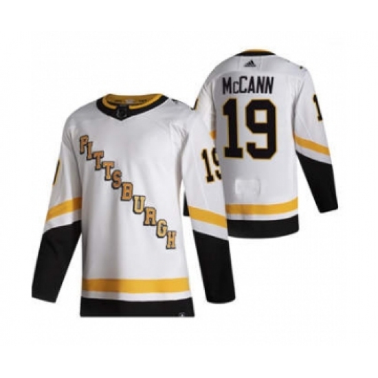 >Men's Pittsburgh Penguins #19 Jared McCann White 2020-21 Reverse Retro Alternate Hockey Jersey