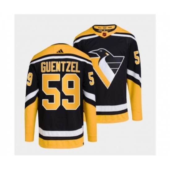 >Men's Pittsburgh Penguins #59 Jake Guentzel Black 2022 Reverse Retro Stitched Jersey