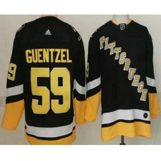 >Men's Pittsburgh Penguins #59 Jake Guentzel Black Alternate Authentic Jersey