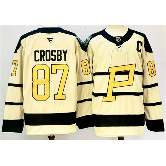 Men's Pittsburgh Penguins #87 Sidney Crosby Cream 2024-25 With C Winter Classic Stitched Hockey Jersey