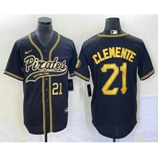 Men's Pittsburgh Pirates #21 Roberto Clemente Number Black Cool Base Stitched Baseball Jersey