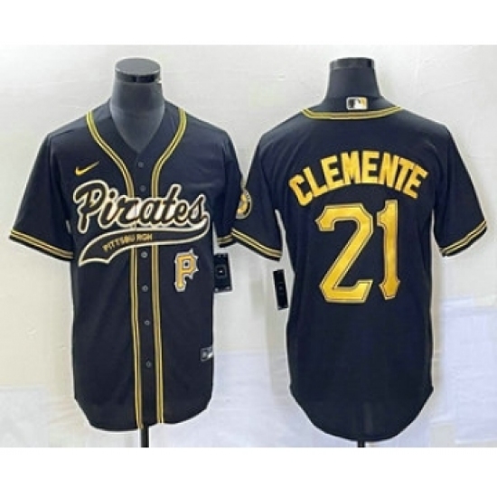 Men's Pittsburgh Pirates #21 Roberto Clemente Number Black Cool Base Stitched Baseball Jersey1