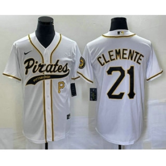 Men's Pittsburgh Pirates #21 Roberto Clemente Number White Cool Base Stitched Baseball Jersey
