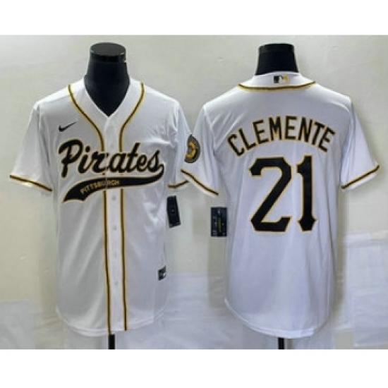 Men's Pittsburgh Pirates #21 Roberto Clemente White Cool Base Stitched Baseball Jersey