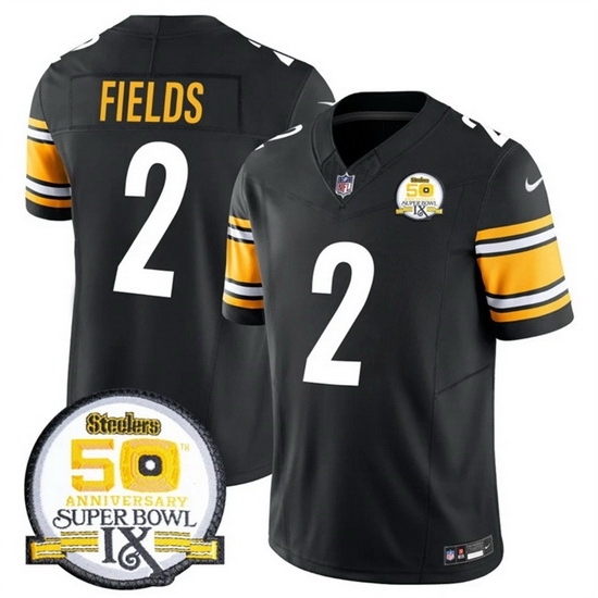 >Men's Pittsburgh Steelers #2 Justin Fields Black 2024 F U S E 50th Anniversary Of Super Bowl IX Alternate Vapor Untouchable Limited Stitched Jersey