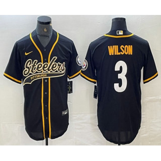 Men's Pittsburgh Steelers #3 Russell Wilson Black With Cool Base Stitched Baseball Jerseys
