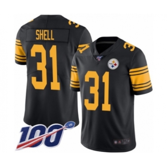 >Men's Pittsburgh Steelers #31 Donnie Shell Limited Black Rush Vapor Untouchable 100th Season Football Jersey