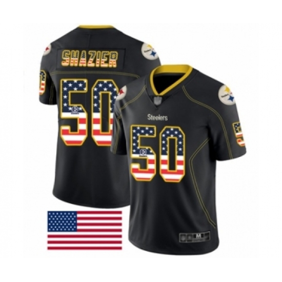 >Men's Pittsburgh Steelers #50 Ryan Shazier Limited Black Rush USA Flag Football Jersey