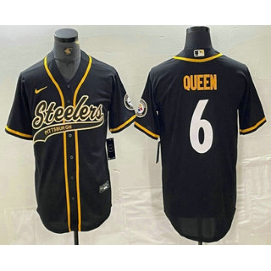 Men's Pittsburgh Steelers #6 Patrick Queen Black With Cool Base Stitched Baseball Jersey