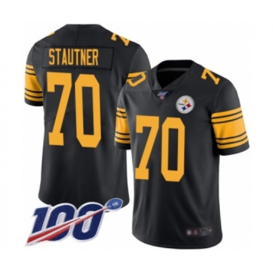 >Men's Pittsburgh Steelers #70 Ernie Stautner Limited Black Rush Vapor Untouchable 100th Season Football Jersey