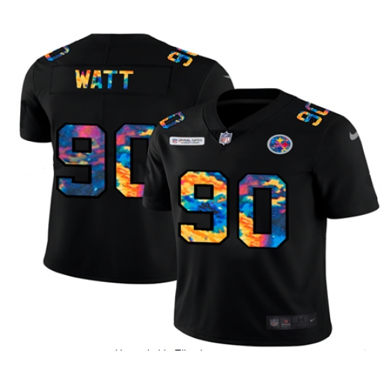 Men's Pittsburgh Steelers #90 T. J. Watt Rainbow Version Nike Limited Jersey
