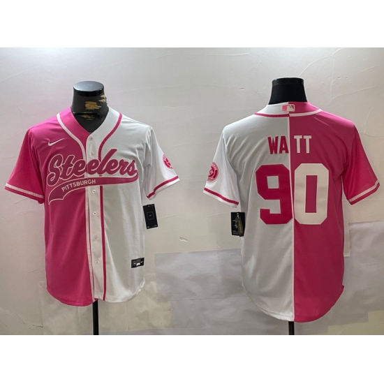 >Men's Pittsburgh Steelers #90 T.J. Watt 2024 Arctic Red White Salute To Service Stitched Baseball Jersey