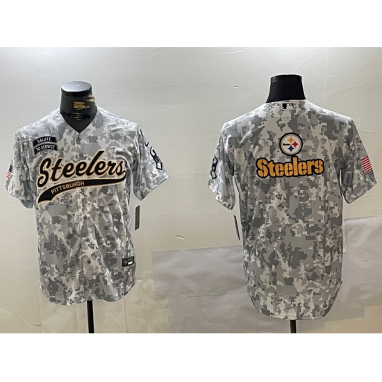 >Men's Pittsburgh Steelers Team Logo 2024 Arctic Camo Salute to Service Stitched Baseball Jerseys