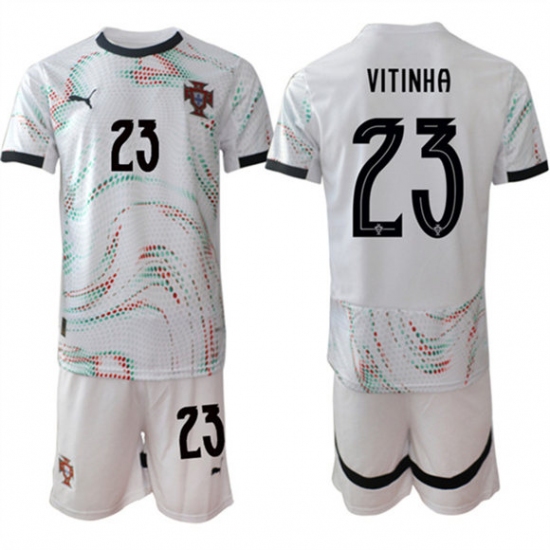 >Men's Portugal Team #23 Vitinha 2025 White Away Soccer Jersey Suit