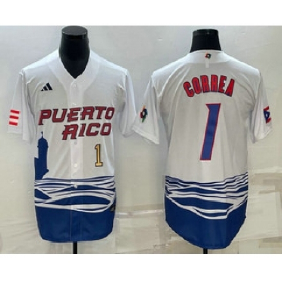 Men's Puerto Rico Baseball #1 Carlos Correa Number White 2023 World Baseball Classic Stitched Jerseys