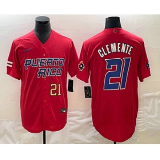 Men's Puerto Rico Baseball #21 Roberto Clemente Number 2023 Red World Classic Stitched Jersey