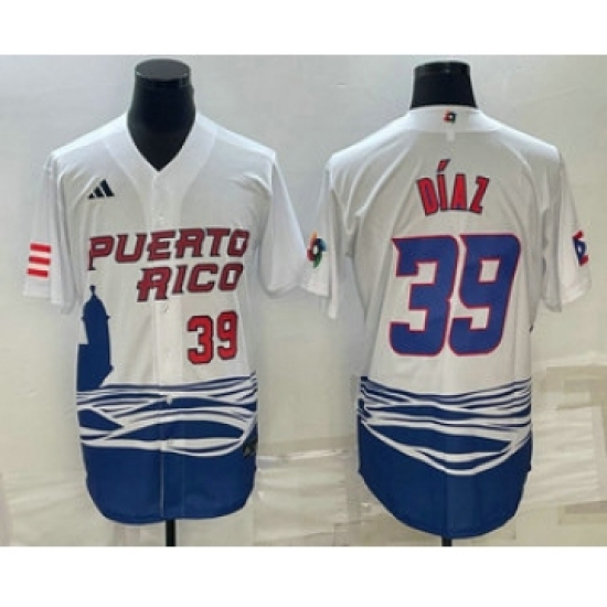 Men's Puerto Rico Baseball #39 Edwin Diaz Number 2023 White World Baseball Classic Stitched Jerseys