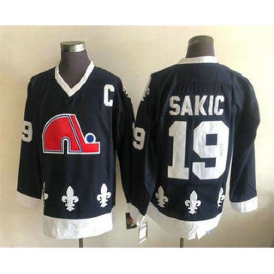 Men's Quebec Nordiques #19 Joe Sakic Black CCM Throwback Stitched NHL Jersey