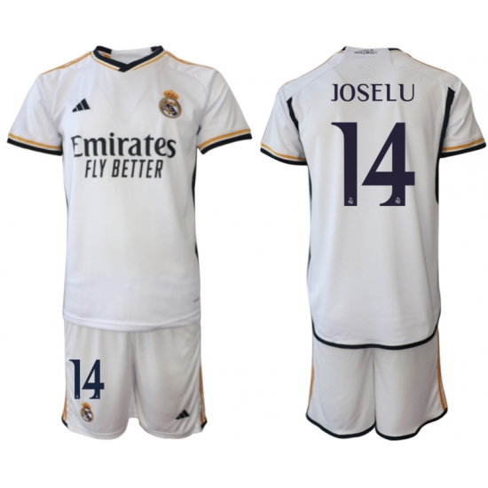 >Men's Real Madrid #14 Joselu 2023-24 White Home Soccer Jersey