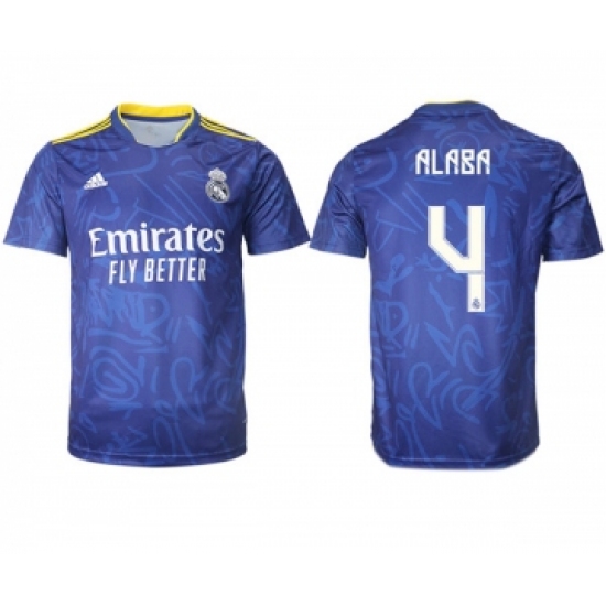 Men's Real Madrid #4 David Alaba 2021-22 Blue Away Soccer Jersey