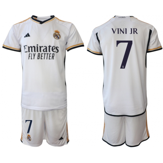 Men's Real Madrid #7 Vini Jr 2023-24 White Home Soccer Jersey
