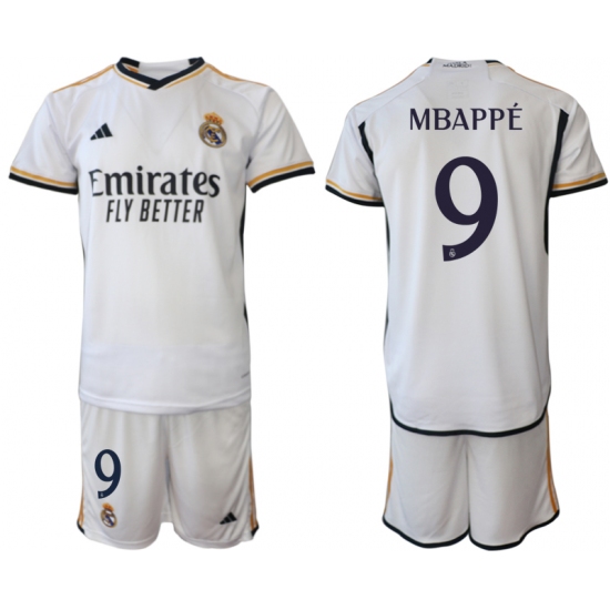 Men's Real Madrid #9 Mbappe 2023-24 White Home Soccer Jersey